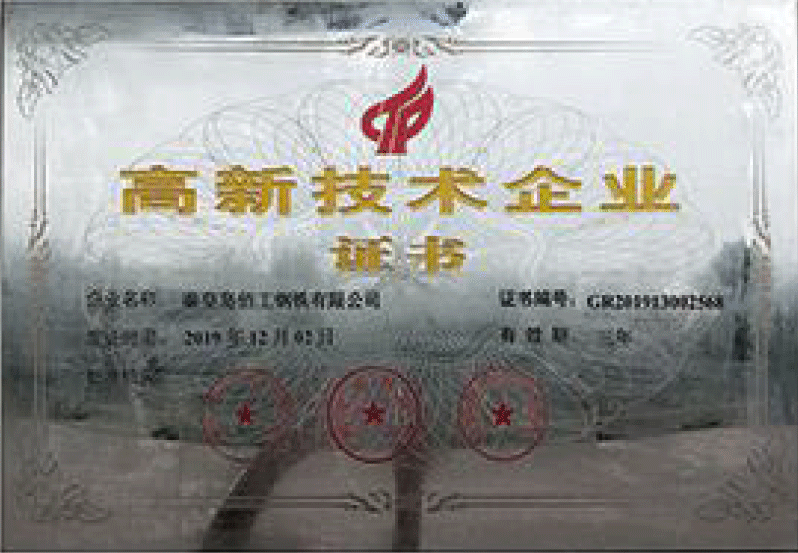 Obtained the "High-tech Enterprise" certificate in 2019;