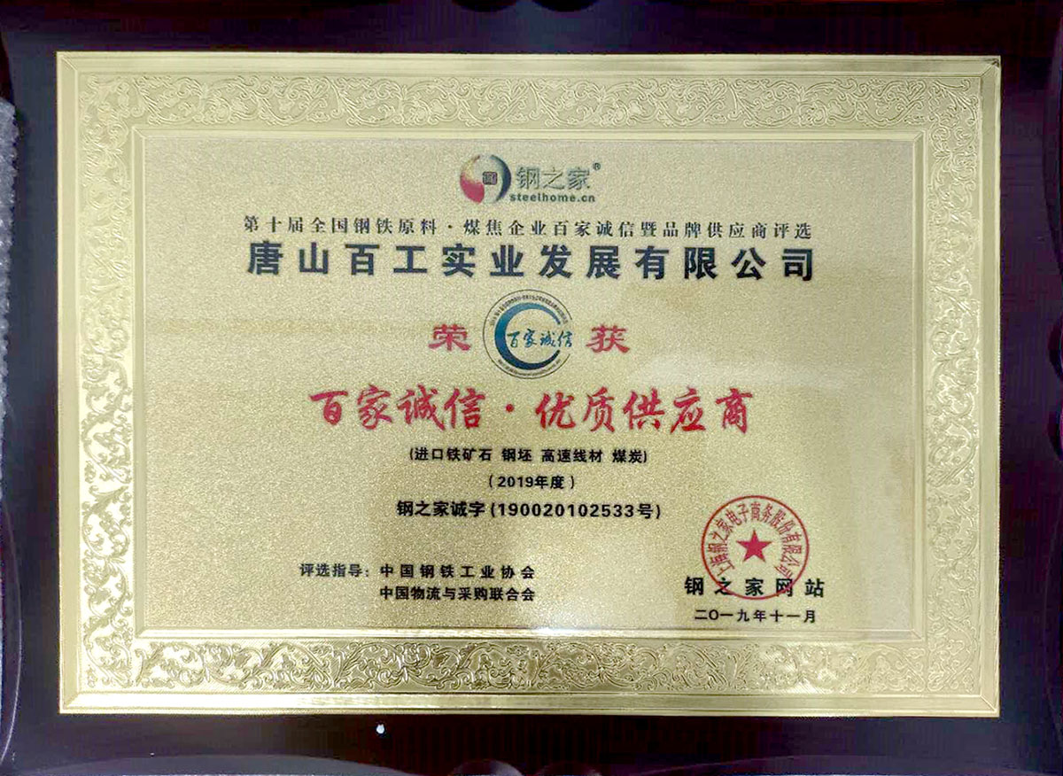 In 2019, it won the title of "100 Integrity and High-quality Suppliers" in the 10th National Steel Raw Material Coal and Coke Enterprise Hundred Integrity and Brand Supplier Selection Event;